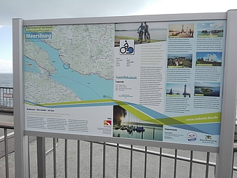 Diese Tafeln stehen an zentralen Knotenpunkten oder an Einstiegsstellen des RadNETZ BW: Wer also aus einem anderen Bundesland über die RadNETZ-Achsen nach Baden-Württemberg kommt, wird mit einer Tafel empfangen. Das gilt genauso für diejenigen, die an einem zentralen Bahnhof in das RadNETZ einsteigen wollen. Treffen sich mehrere RadNETZ-Achsen an einem Punkt, geben die Infotafeln an diesen Stellen Auskunft über das landesweite Premiumnetz.