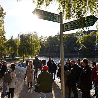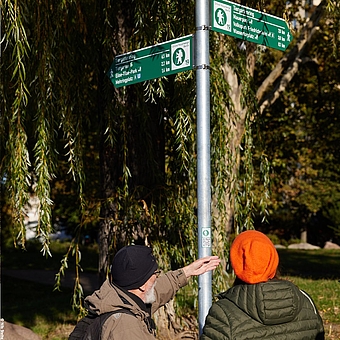 Am 16.10.2024 wurde bei schönstem Oktoberwetter der erste Wegweiser der Grünen Hauptwegen der wanderinteressierten Öffentlichkeit präsentiert. Direkt am Urbanhafen / Landwehrkanal mitten in Kreuzberg fand der Pressetermin mit der Senatorin Ute Bonde statt. Auf insgesamt 20 Routen und über 570 km Netz kann man in die grünen Oasen der Hauptstadt eintauchen. Seit 2021 begleitet das Planungsbüro VIA eG das Projekt und ist maßgeblich an der Entwicklung des Schilderlayouts und an der Standortplanung beteiligt. Zusammen mit den Wegepaten des Berliner Wanderverbandes und den Mitarbeitenden der Senatsverwaltung und der Bezirke wurden alle Wege von VIA-Mitarbeitenden begangen und begutachtet. Das daraus erstellte Beschilderungskonzept geht jetzt mit den ersten sechs Wegen in die Umsetzung. Die Realisierung der Beschilderung an den übrigen Wegen erfolgt dann bis Ende 2025. Ein Grund mehr der Hauptstadt einen Besuch abzustatten!